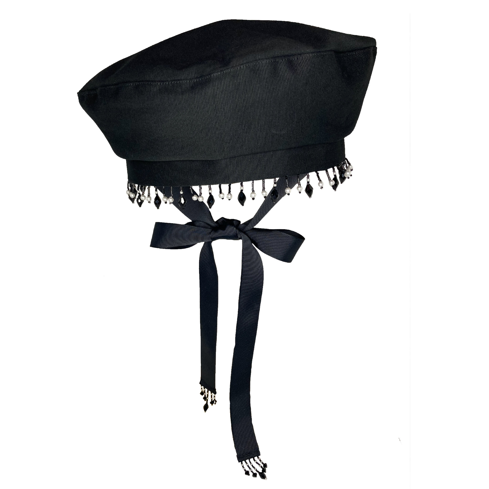 Drop fringe beretのデザインを反映したビーズ使いですが、既存のMIZUNA embroideryのハットをお持ちでいらっしゃる場合は付け替えリボンとしてもお楽しみいただけます。