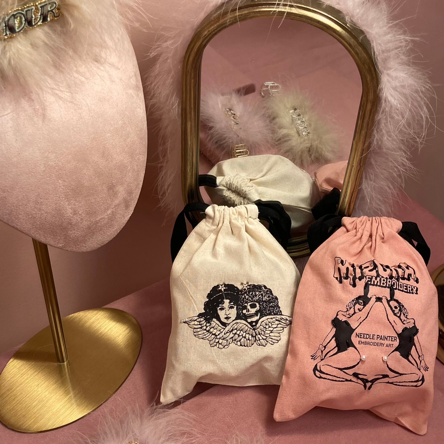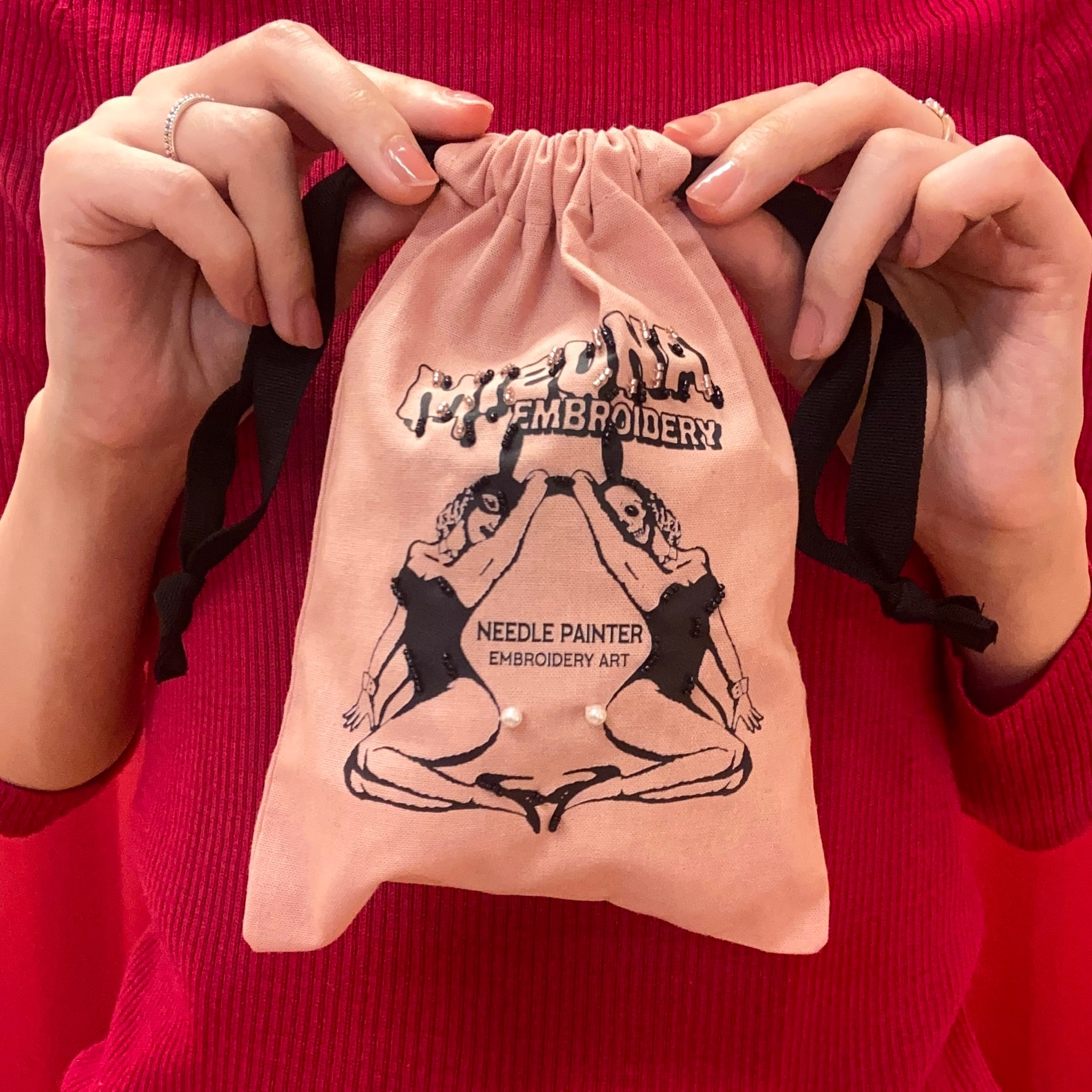 MIZUNA embroideryのブランドアイコンとして使用しているグラフィックをポーチにしました。