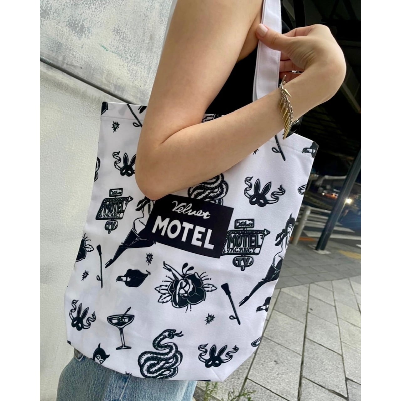 Tattoo総柄A4トートバッグ【MOTEL】PINK