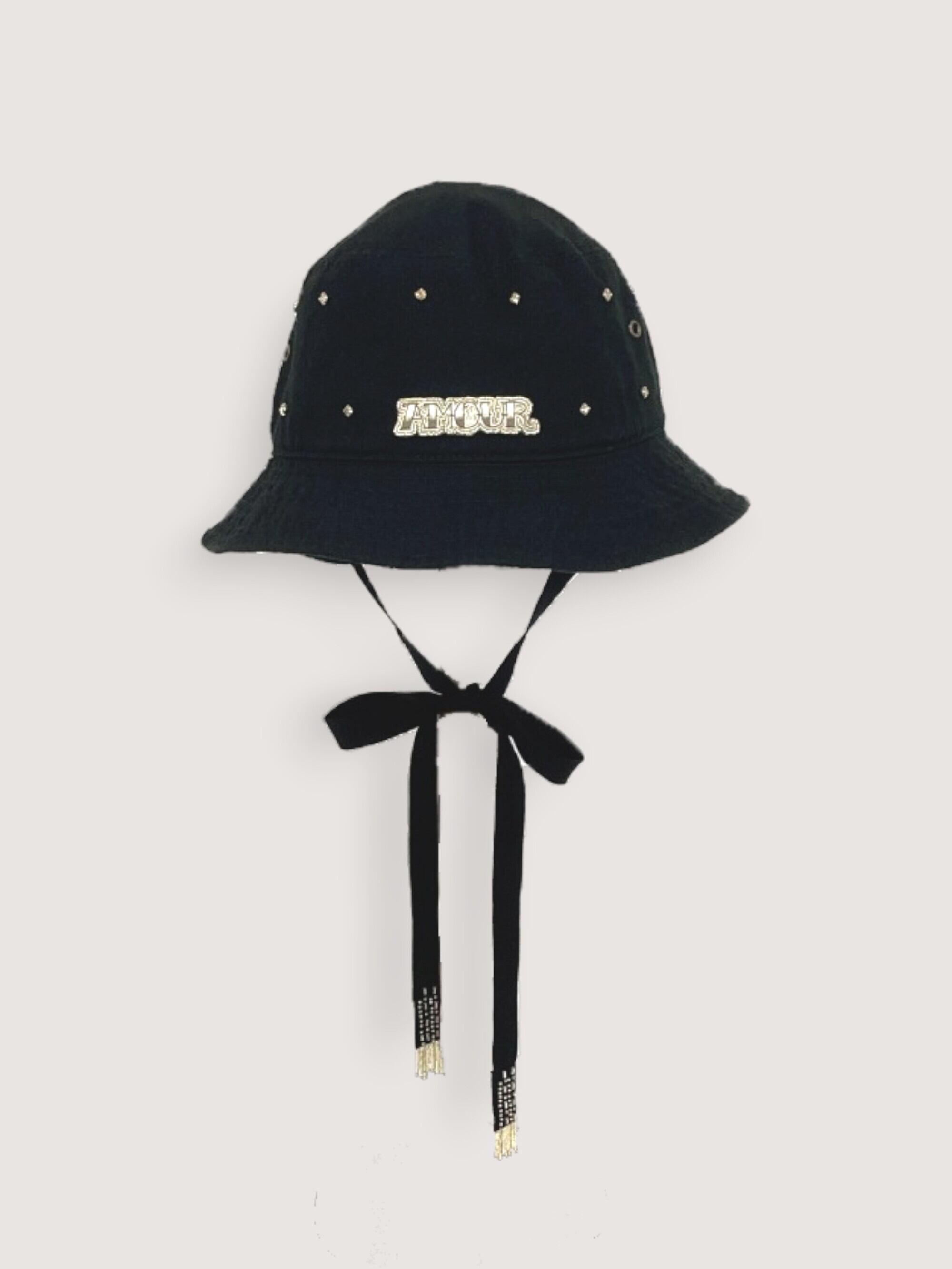 リボン付きビーズ刺繍バケットハット【AMOUR】BLACK